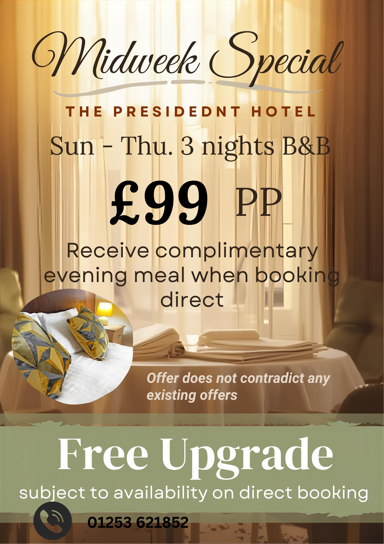 £99.00 B&B - receive a complimentary Evening Meal when booking direct